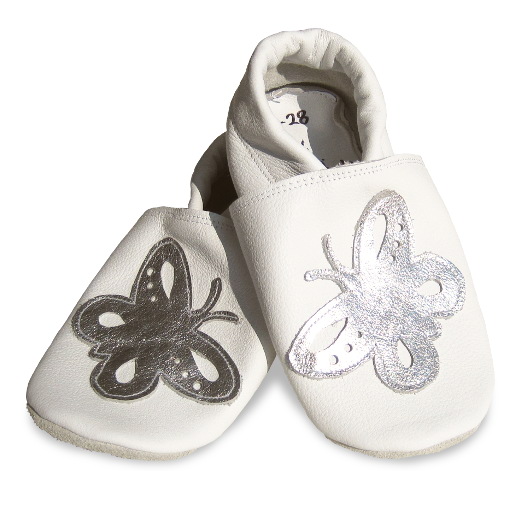 Lederfinken - Schmetterling auf weiss - Gr. 41-42 Finkli aus echtem Leder. Weitere Informationen: